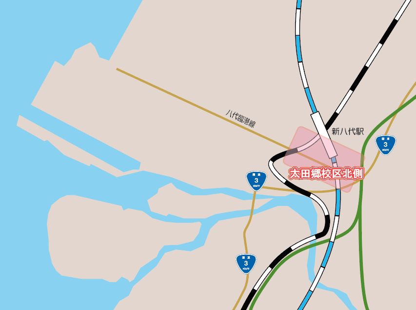 臨港線と呼ばれる幹線道路が地域を通り、これを中心に様々な郊外店が並びます。 臨港線を車で西側に向かうとさまざまな郊外型店舗が構えております。 また、東に行くと八代インターがすぐそば。高速道路を通勤に使われる方にも魅力的です。