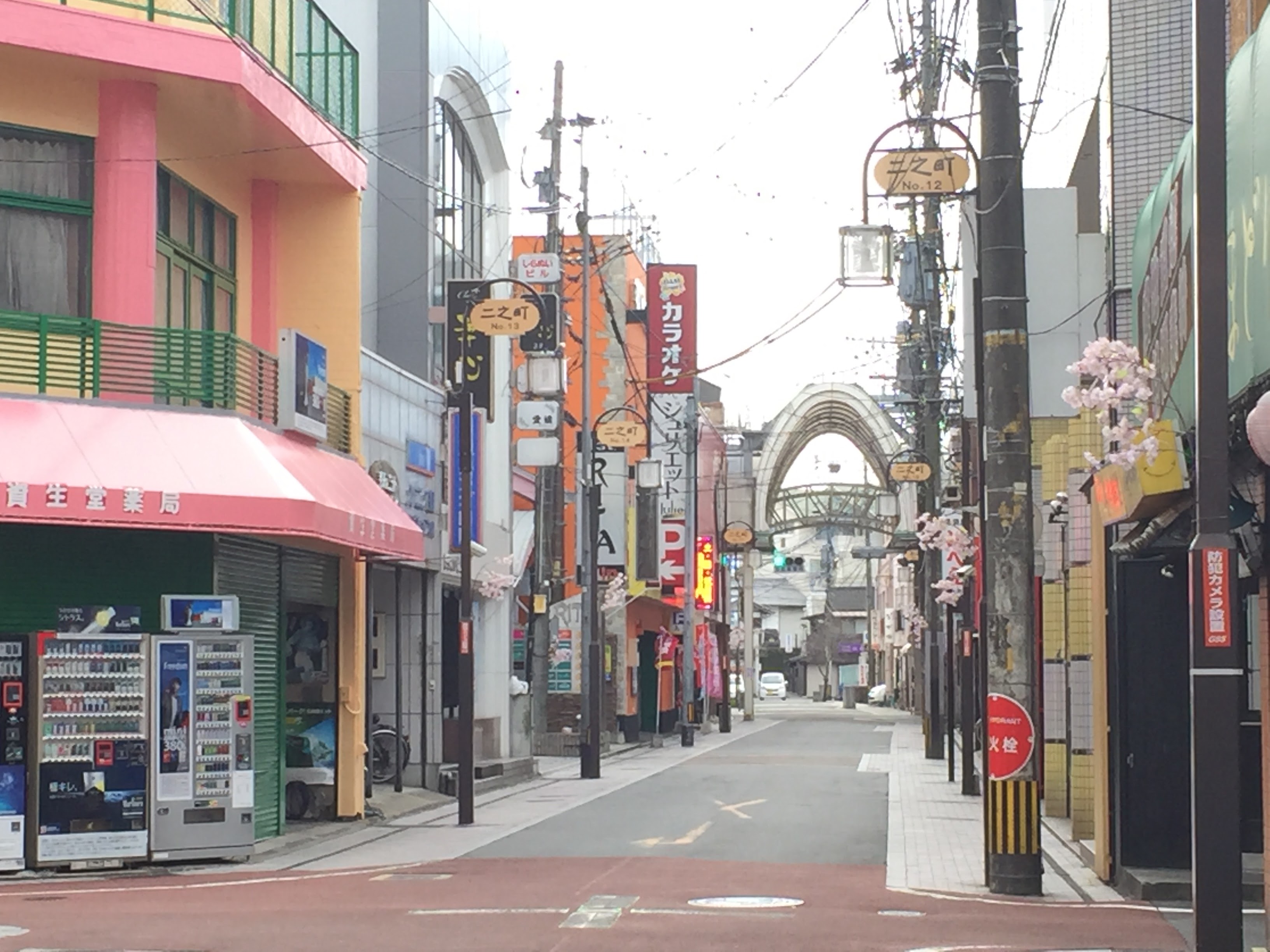 本町アーケード街と飲食店街。代陽校区では歩いて飲みに行けます。